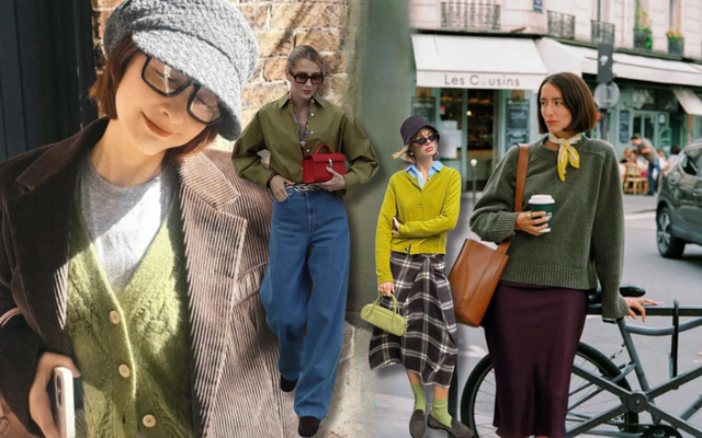 Ở lớp len dệt kim, xanh trầm tỏa sáng theo cách riêng. Áo len xanh rêu hay olive có sự ấm áp của lửa nhưng mát dịu như bóng cây, phù hợp mọi độ tuổi. Công thức đơn giản nhất là áo len xanh và quần jeans xanh nhạt. Muốn sang hơn hãy thay bằng váy lụa trơn, đi giày Mary Jane hoặc bốt mũi nhọn là đủ cảm giác công sở thanh lịch. Khi trời rét, áo len xanh làm lớp trong dưới áo khoác nâu là sự kết đôi kinh điển.