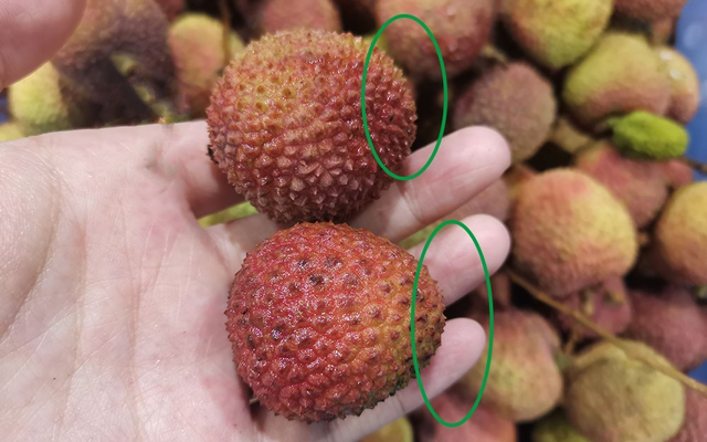 Vỏ vải vốn có lớp gai nhỏ li ti, gọi là "gai vỏ" - không nhọn hoắt nhưng sờ vào vẫn cảm thấy sần sùi, cứng cáp. Vải càng tươi thì lớp gai này càng rõ và nhám tay. Ngược lại, nếu cầm lên thấy vỏ trơn nhẵn, thậm chí hơi mềm là dấu hiệu quả đã để lâu, hoặc bị chín ép quá đà. Những quả này khi bóc ra thường khô, nhạt, không còn độ mọng nước hấp dẫn như vải tươi. Vỏ càng gai, vải càng ngon - nhớ nhé!