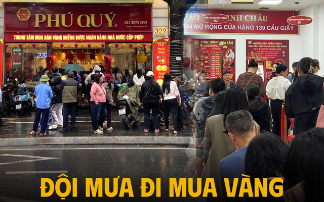 Hôm nay - 1 ngày trước ngày vía Thần Tài, bất chấp “đặc sản” mưa phùn nồm ẩm của mùa xuân miền Bắc, nhiều người đội mưa, mang vàng đi bán chốt lời hoặc mua vàng “rước Thần Tài” từ sớm. Tình hình các tiệm vàng ở Hà Nội nói chung và trên phố Cầu Giấy nói riêng vẫn nhộn nhịp như thường lệ.