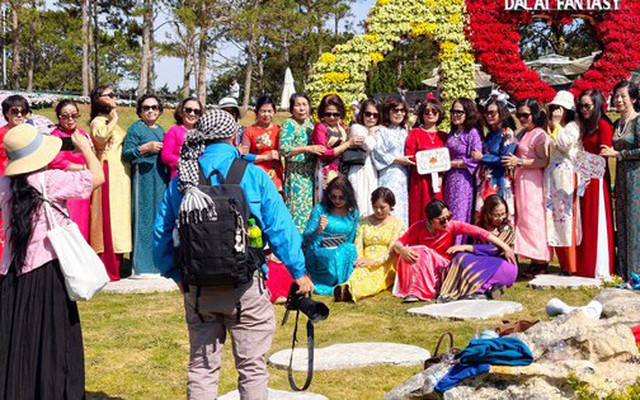 Du khách quốc tế du xuân, chụp ảnh ở Đà Lạt. Trong kỳ nghỉ Tết này, ước tính ban đầu có hơn 60.000 lượt du khách quốc tế đến với Lâm Đồng tham quan, nghỉ dưỡng.
