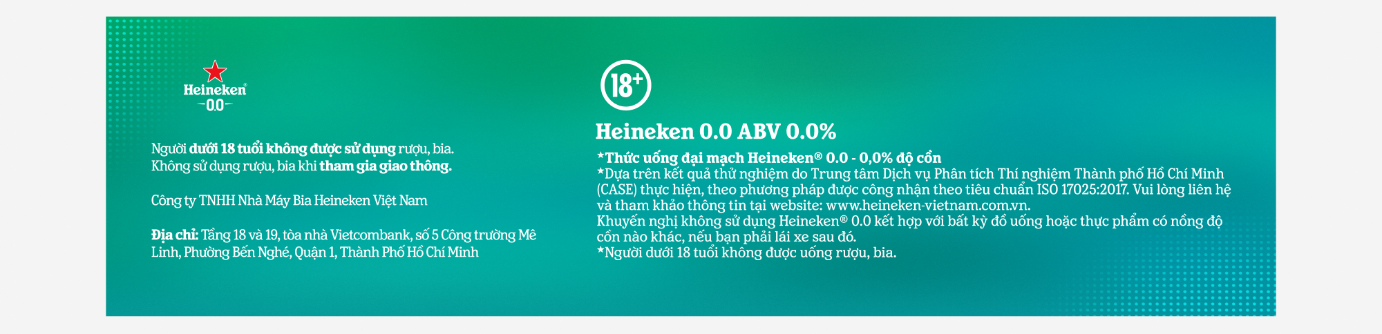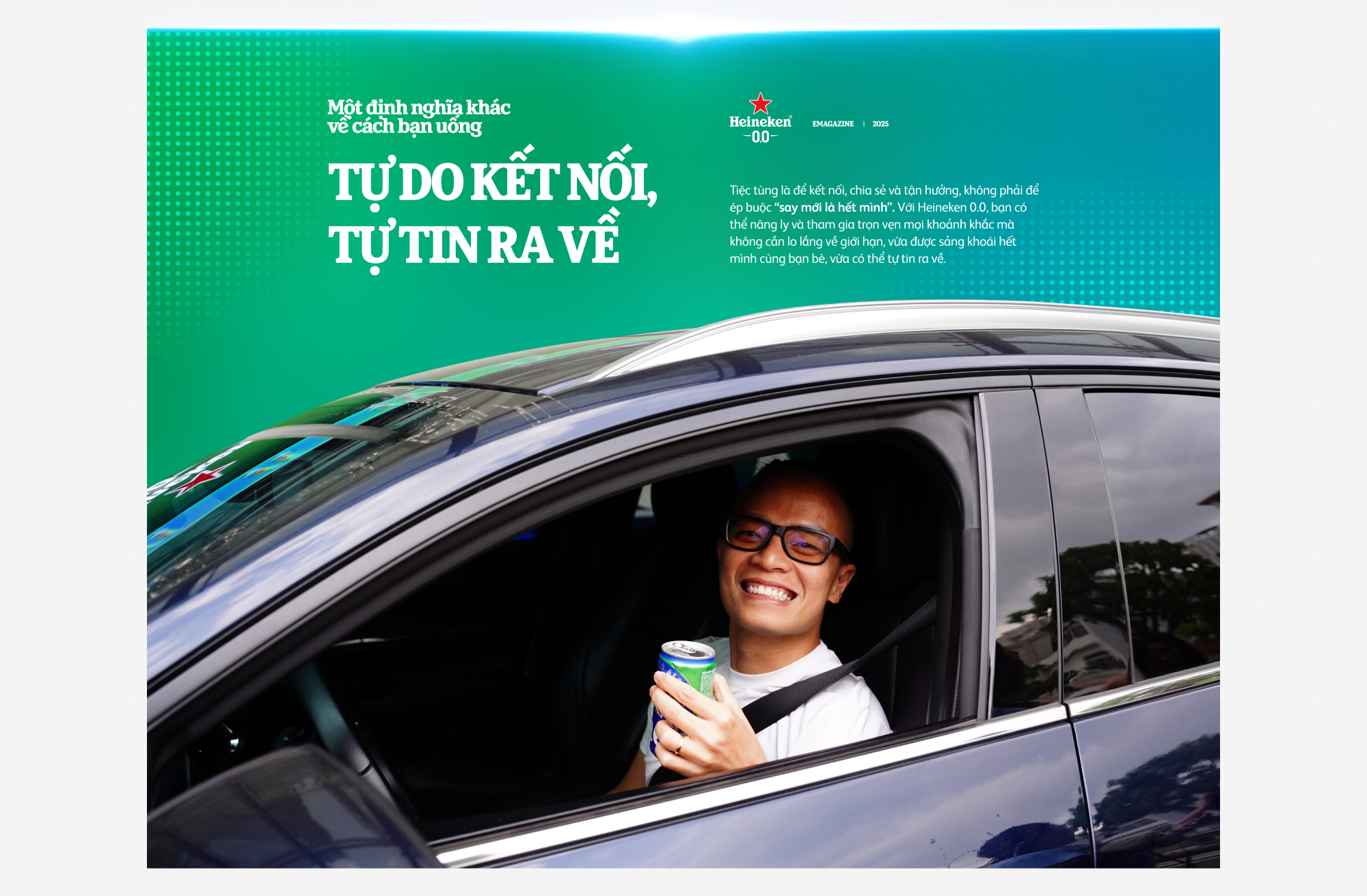 Giờ đây, chọn cầm lái không đồng nghĩa với việc phải bỏ lỡ niềm vui. Heineken 0.0 nhắn rằng, bạn hoàn toàn có thể bật hết năng lượng, hoà vào tiệc vui kết nối và rồi tự tin ngồi sau vô lăng trên đường về nhà. Với Heineken 0.0, niềm vui trọn vẹn không cần phải đánh đổi.
