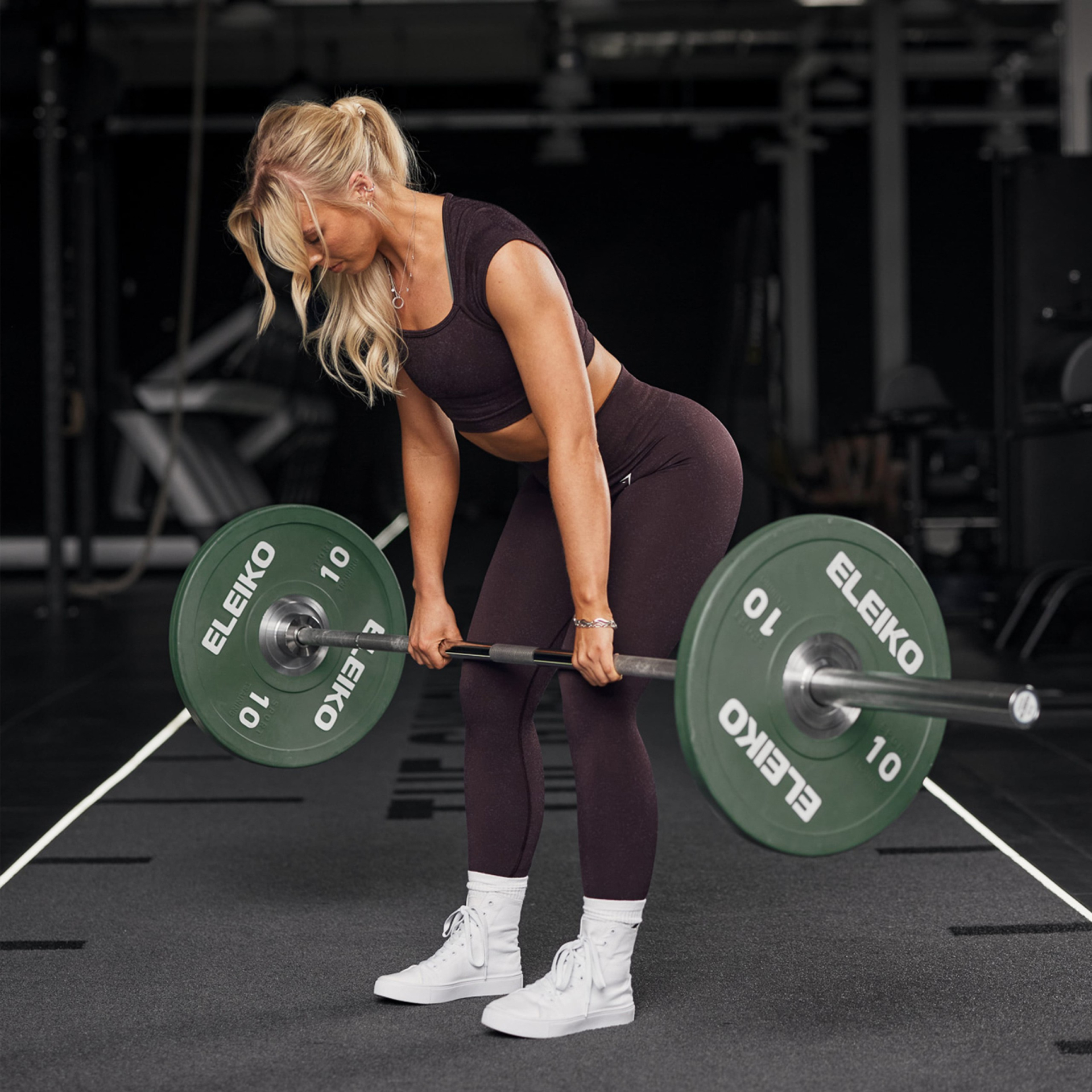 Không cần hạ tạ quá thấp nếu lưng bạn bắt đầu cong; điểm dừng là khi hông không thể đẩy ra sau thêm được nữa.