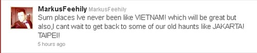 Theo đó sau khi biểu diễn tại Manila, Philippines cuối tháng 9, Westlife sẽ vi vu sang Hà Nội để “đốt” sân khấu với một concert hoành tráng vào 1/10. Mark thậm chí đã dành một tweet riêng về Việt Nam, điều này càng khiến các V-fan sung sướng chết ngất. Có vẻ như anh chàng cũng háo hức không kém khi được tới đây biểu diễn lần đầu tiên.