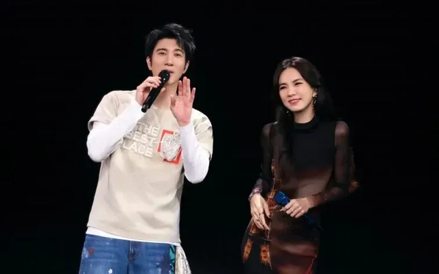 Hai nghệ sĩ giao lưu vui vẻ trên sân khấu. (Ảnh: Weibo)