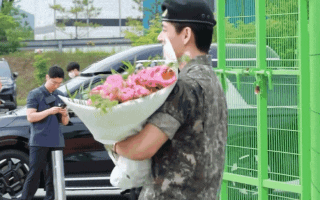 Hậu nhập ngũ, V trở nên nam tính, vạm vỡ, khí chất cũng trưởng thành hơn (ảnh: X)