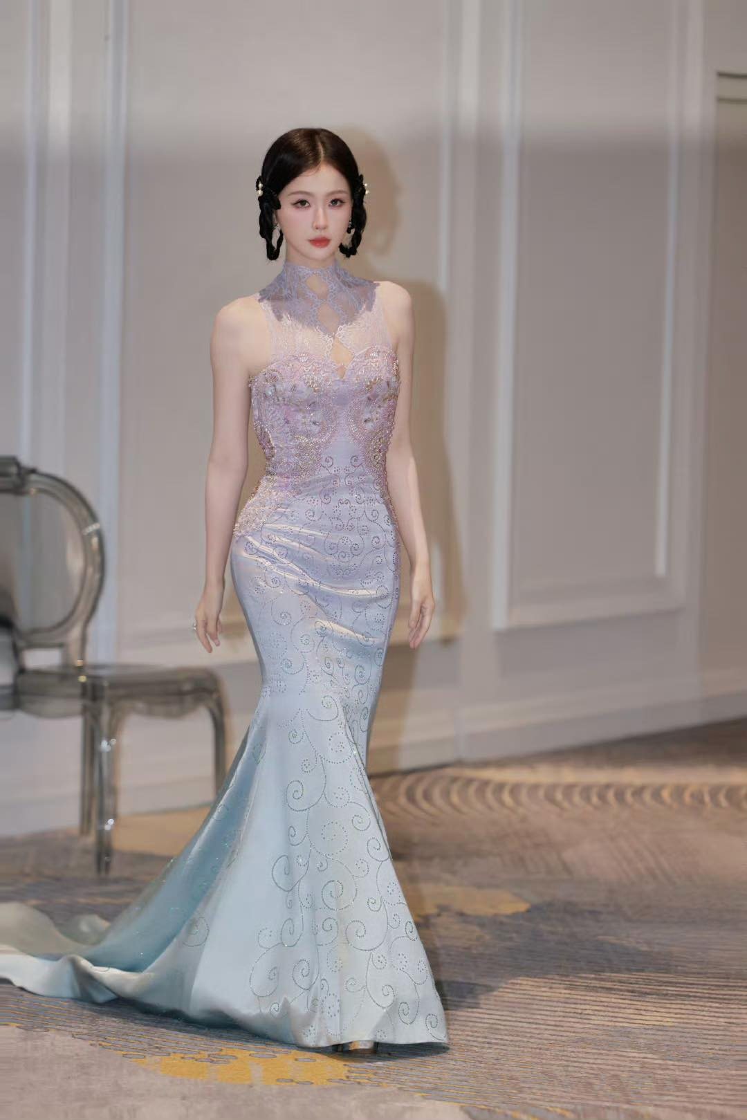 Xuất hiện tại một sự kiện mới đây ở Malaysia, Ngu Thư Hân nhanh chóng trở thành tâm điểm bàn tán khi lựa chọn tạo hình mang đậm màu sắc cổ điển pha hiện đại. Nữ nghệ sĩ diện thiết kế ôm sát dáng theo phom sườn xám cách tân, tông tím nhạt ánh kim, phần cổ cao phối ren cùng những đường thêu cầu kỳ chạy dọc thân váy. Tổng thể trang phục hướng đến hình ảnh nữ tính, thanh lịch, nhưng lại bị nhận xét là thiếu tinh tế, thậm chí "sến súa".