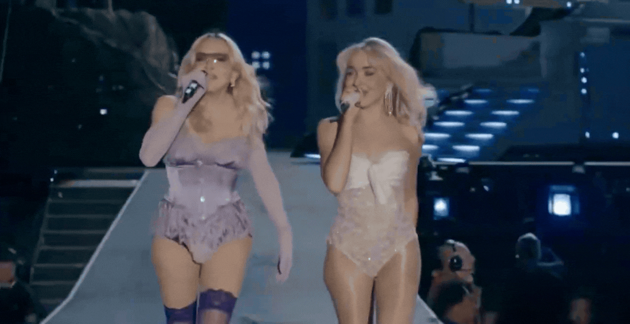Bên cạnh đó, định hướng nghệ thuật của cả hai có tính tương đồng cao. Các set diễn của Madonna và Sabrina luôn đi theo concept rõ ràng, mang đậm hơi thở nhạc kịch Broadway. Sự pha trộn giữa yếu tố cổ điển và thông điệp hiện đại là công thức tạo nên dấu ấn thị giác mạnh mẽ. Hơn thế nữa, nếu Madonna từng dùng âm nhạc để châm biếm định kiến xã hội, Sabrina Carpenter cũng cho thấy sự nhạy bén khi biến câu chuyện dư luận thành chất liệu viral. Những đoạn outro thay đổi liên tục trong Nonsense hay sự mỉa mai duyên dáng trong Please Please Please là minh chứng cho việc cô biết cách biến sự chú ý của công chúng thành nghệ thuật.