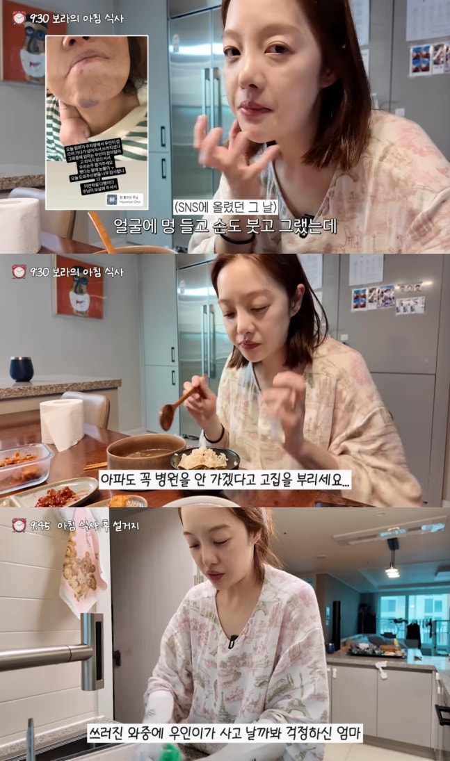 Hwang Bora tiết lộ mẹ cô bị tai nạn khi trông cháu và không chịu đến bệnh viện. Ảnh: Xports News
