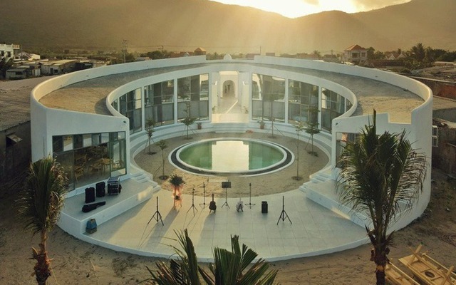 Giữa khu nhà có thêm một hồ bơi hình tròn, hướng thẳng ra biển Ninh Thuận