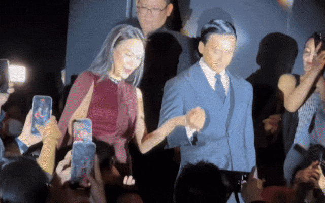 Trước đông đảo giới truyền thông, cả hai không ngần ngại có những hành động tình tứ. Nguồn: Mai Tài Phến