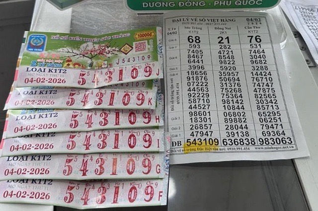 6 tờ vé số đem lại may mắn cho người đàn ông mang dãy số 543109 của đài Sóc Trăng, mở thưởng xổ số miền Nam ngày 4/2. Vị khách sau đó đã đến đại lý để đổi thưởng và nhận toàn bộ tiền thưởng bằng tiền mặt.