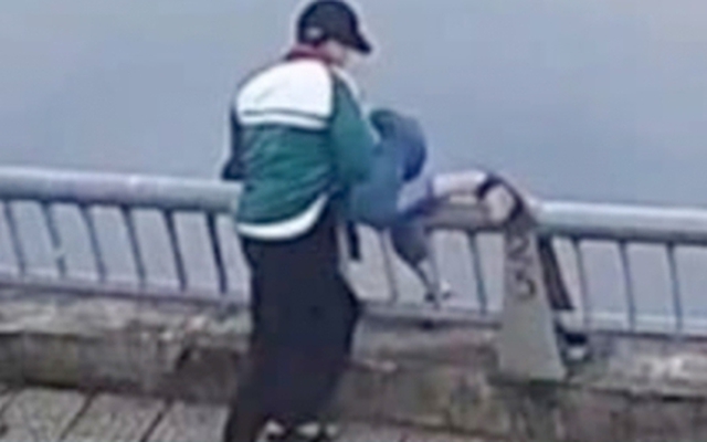 Hình ảnh nam sinh hất bạn của mình xuống hồ nước. (Ảnh: Cắt từ clip)