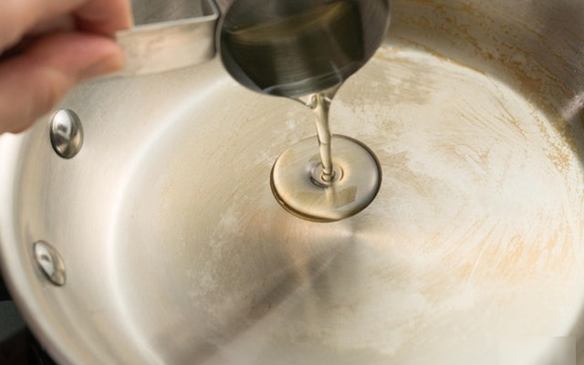 Lưu ý quan trọng: không bao giờ đổ nước vào chảo khi trong chảo đã có dầu nóng, vì có thể gây bắn dầu và bỏng.