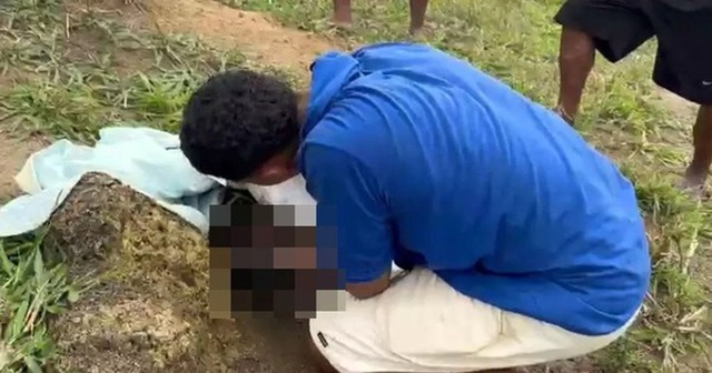 Đoạn clip cho thấy bé sơ sinh nằm ngửa trong một cái hố nông, nhìn lên những người tìm thấy em. Em bé không mặc quần áo và vẫn còn nguyên dây rốn.