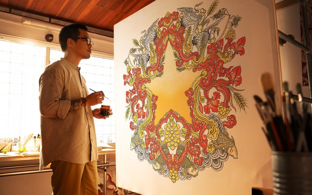 Sau quá trình bàn bạc cùng đội ngũ Sapporo, cả hai cũng quyết định đưa vào tác phẩm những biểu tượng đặc trưng: hạc, cá chép theo hai phong cách tranh khắc gỗ Nhật Bản (Ukiyo-e) và Việt Nam (Đông Hồ), cùng cờ cá chép và lồng đèn cá chép trong lễ hội. Những hình tượng này không chỉ mang ý nghĩa truyền thống về sự vươn lên, may mắn mà còn thay cho lời chúc và sự gửi gắm từ thương hiệu. Bên cạnh đó, hoa văn chạm khắc gỗ - đá dạng sóng nước, mây và các thành phần của bia như lúa mạch, hoa bia, nguồn nước được lồng ghép khéo léo, vừa đủ đầy, vừa tinh tế.
