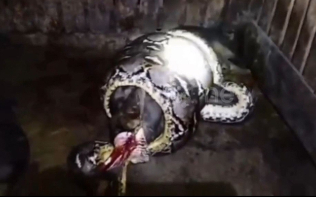 Đoạn clip ghi lại cảnh một con trăn lớn đã săn con lợn nái và lợn con của nó tại huyện Sopai, huyện Bắc Toraja, Indonesia, vào sáng sớm ngày 21/10.