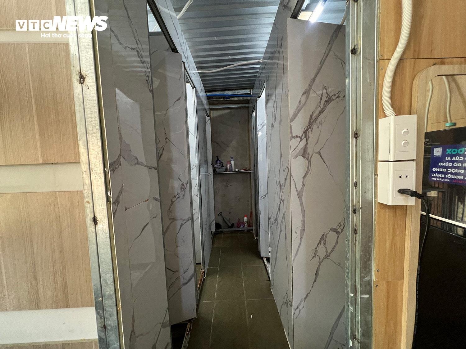 Các hộp ngủ được lắp ráp bằng khung sắt có diện tích khoảng 2 m², ngăn cách bởi tấm gỗ.