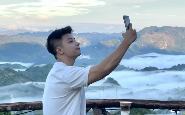 Tại điểm check-in cao nhất Mộc Châu, du khách có thể nhâm nhi ly cà phê giữa mây ngàn và đợi hoàng hôn buông xuống. Ảnh: Dương Triều.