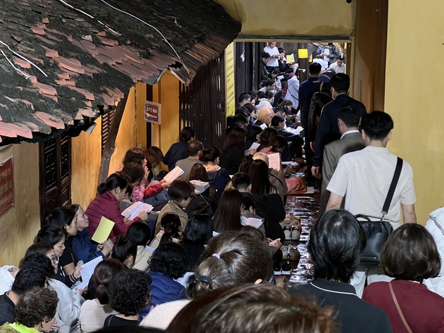 Dù lượng người đổ về đông, không khí vẫn giữ được sự trật tự, trang nghiêm. Toàn bộ người dân đến làm lễ được hướng dẫn, bố trí chỗ ngồi trong khuôn viên chùa, đảm bảo không ảnh hưởng đến giao thông khu vực bên ngoài cổng chùa.