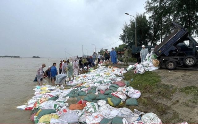 Cả nghìn người được huy động để "vá" bờ kè sạt lở.