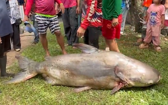 Con cá tra dầu khổng lồ nặng 200kg bị bắt.