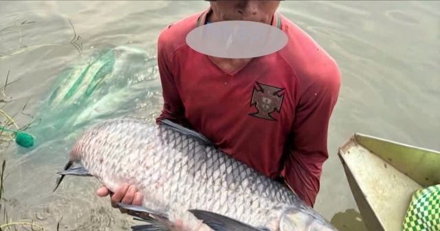 Một người dân vác con cá hơn chục kg đánh bắt được