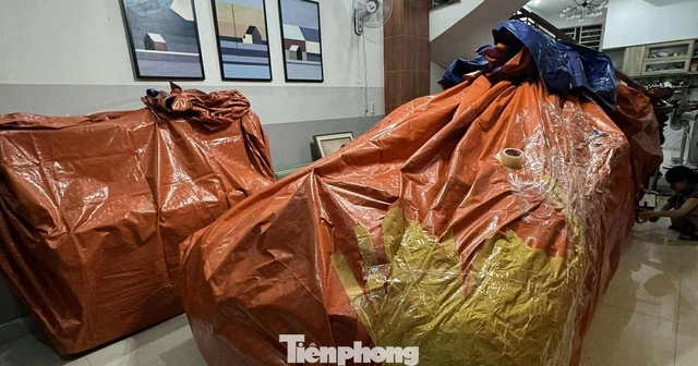 Ngoài xe ô tô, anh còn dùng bạt bọc kín cây đàn piano đề phòng nước lũ. Phía ngoài cửa còn làm thêm vách chống ngập cao 1,4m. Anh chia sẻ thêm, đợt ngập lịch sử vào tháng 10/2022, nhà anh bị ngập 1m, hư hại rất nhiều đồ đạc. Xe ô tô cũng bị nhấn chìm nên giờ nghe dự báo mưa lớn là rùng mình.