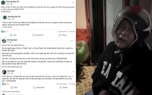 Một người dùng mạng viết trong tuyệt vọng:“Em xin nhờ mọi người hỗ trợ ạ. Em có người quen ở Xóm 4, Thanh Huy 1, xã Tuy Phước Tây (trước đây là Phước An), huyện Tuy Phước, Bình Định. Nhà bạn hiện có hai người già nằm một chỗ và một con gái thể trạng rất yếu. Sau bão, nhà đã bị tốc hết mái và em mất liên lạc với bạn. Nếu ai ở gần khu vực này hoặc biết thông tin về gia đình, mong mọi người kiểm tra giúp và báo lại để em được biết tình hình. Em xin chân thành cảm ơn!”
