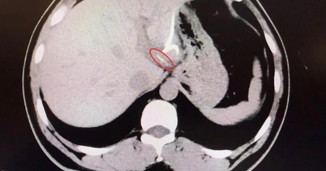 Mãi đến khi chụp CT, các bác sĩ mới phát hiện một vật thể dài, nhọn trong gan trái, gần vùng nối với dạ dày, hình dạng giống hệt… một chiếc xương cá! Hóa ra, chiếc xương này đã xuyên qua thành dạ dày, “chui” thẳng vào gan, gây nhiễm trùng và tạo ổ mủ lớn.