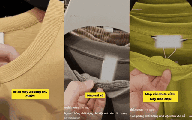 Hãy nhìn thật kỹ phần viền nối giữa cổ và thân áo. Nếu chỉ mới sờ thử mà đã thấy xù lông, sợi vải bung nhẹ, thì đừng tiếc.