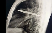 Phim chụp X-quang ngực của bệnh nhân cho thấy một lưỡi dao lớn găm vào giữa lồng ngực