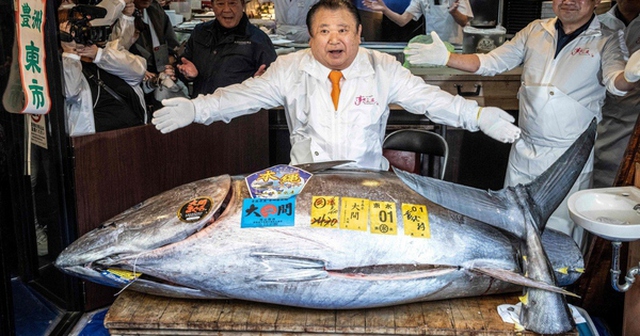 Con cá ngừ nặng khoảng 242kg đã được bán tại chợ cá Toyosu ở Tokyo, Nhật Bản, trong phiên đấu giá thường niên đầu năm cho tập đoàn Kiyomura, đơn vị điều hành nhà hàng Sushi Zanmai, thuộc sở hữu của "Vua cá ngừ" Kiyoshi Kimura.