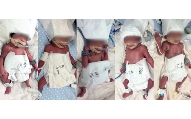 Năm em bé, một trai và bốn gái, có cân nặng trung bình khoảng 1 kg. Các chỉ số sinh tồn của các bé tương đối ổn định và tất cả đều đang được theo dõi tại phòng chăm sóc đặc biệt dành cho trẻ sơ sinh. Người mẹ đã được chuyển đến phòng bệnh thông thường.