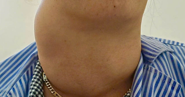 Được biết nữ bệnh nhân được chẩn đoán mắc Basedow từ năm 2019 và điều trị định kỳ bằng thuốc kháng giáp tại Bệnh viện Nội tiết Trung ương. Thời gian gần đây, cổ bệnh nhân to nhanh bất thường, bướu phát triển lớn, gây khó thở, khó nuốt, mất ngủ và ảnh hưởng lớn đến thẩm mỹ.
