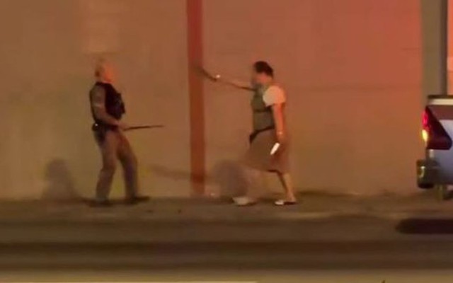 Người phụ nữ cầm dao đe dọa cảnh sát.