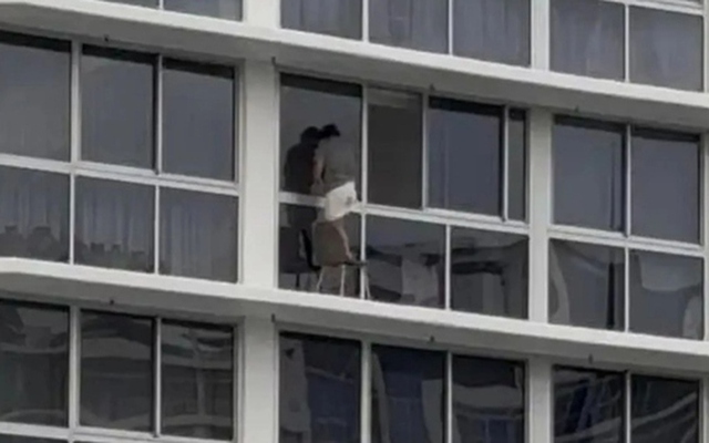 Đoạn clip gây sốc cho thấy người phụ nữ đang đùa giỡn với tử thần khi đứng ở gờ hẹp bên ngoài tầng 16 của tòa nhà chung cư ở Gold Coast, Úc.