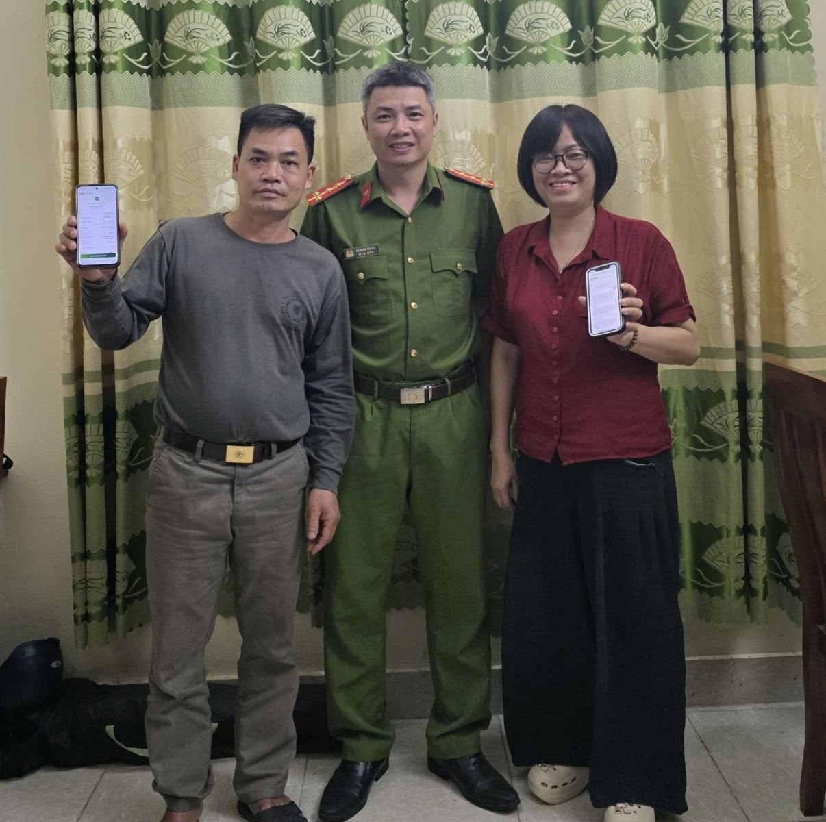 Công an xã Nam Đông Hưng, tỉnh Hưng Yên hỗ trợ người dân nhận lại tiền chuyển khoản nhầm. Ảnh: Công an tỉnh Hưng Yên.