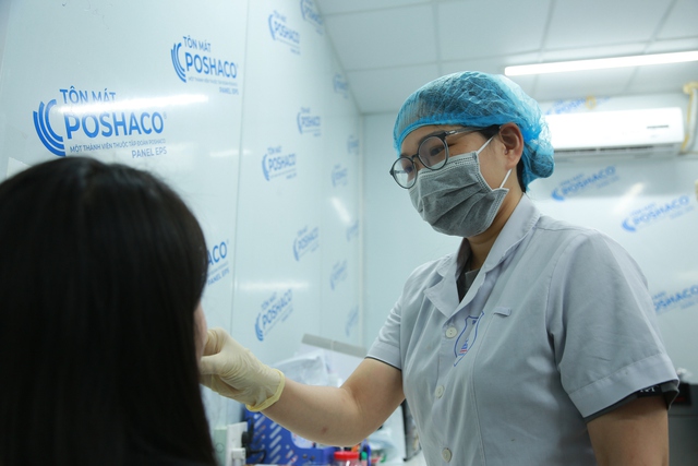 Chị Hà đang thực hiện thao tác xét nghiệm (ảnh: H.Y).