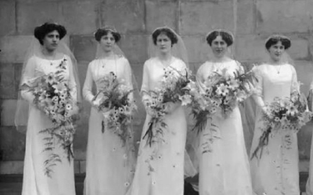 Ban đầu, cô dâu và các phù dâu đều mặc giống nhau. (Ảnh: Getty Images)