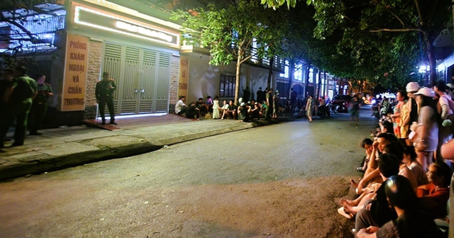 Hàng trăm người dân hiếu kỳ đứng bên ngoài phòng khám xem lực lượng chức năng làm việc