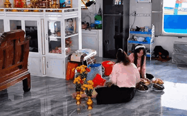 Bên trong, căn nhà được thiết kế hệ thống cửa sổ và rèm mành để đón ánh sáng tự nhiên, tạo cảm giác thông thoáng và dễ chịu. Nội thất cơ bản như bàn ghế, tủ kệ đều được trang bị đầy đủ, thậm chí còn bố trí một gian thờ nhỏ, thể hiện nét sinh hoạt và tín ngưỡng quen thuộc của người miền Tây dù sống trên sông nước.