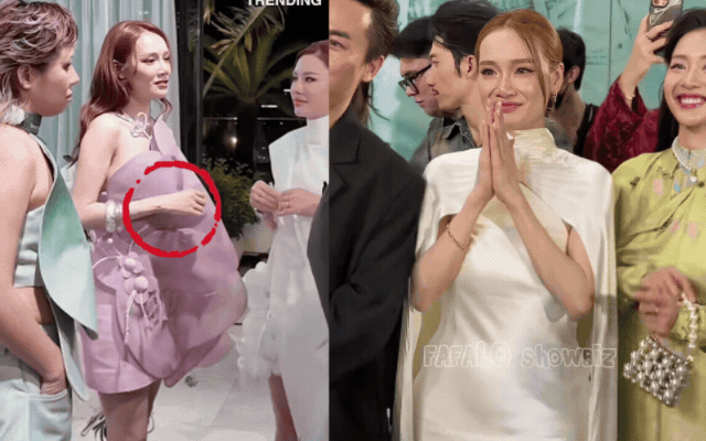 Ở một khoảnh khắc khác, phần cằm của Nhã Phương trông nhọn hơn bình thường. Đây có thể là do sử dụng filler hoặc do nữ diễn viên giảm cân khiến gương mặt trở nên hốc hác.