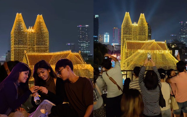 Thời gian chiếu sáng cũng được mở rộng để phục vụ du khách. Từ 29/11 đến 7/12, đèn được thắp sáng từ 18h45 đến 23h và từ ngày 8/12/2025 đến 5/1/2026 ánh sáng của nhà thờ sẽ rực rỡ tới 2h sáng hôm sau. Hàng triệu bóng đèn đèn LED đã biến toàn bộ mặt ngoài công trình trở thành điểm check in lý tưởng. Không chỉ các bạn trẻ, người lớn và nhiều gia đình có con nhỏ cũng thích thú dừng xe sát bên đường ngồi ngay trên công viên trước nhà thờ để vừa ngắm cảnh vừa cảm nhận nhịp sóng sôi động của phố vườn.