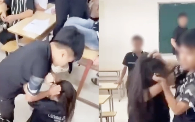 Như đã thông tin, trên mạng xã hội facebook lan truyền clip dài hơn 2 phút, ghi lại cảnh một nam sinh mặc áo đen nắm tóc, dí mặt bạn nữ xuống ghế, liên tiếp đấm vào đầu nữ sinh này. Xung quanh nhiều nam sinh khác đứng xem, hò hét cổ vũ và quay lại.