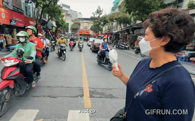 Hàng loạt xe máy, ô tô ngày một nhiều, người bán hàng rong với xe đẩy, một số giao lộ không đèn tín hiệu nhưng dòng xe vẫn trôi đi. Đó là màn trình diễn điêu luyện của việc lạng lách, né tránh và đưa ra quyết định trong tích tắc – điều mà chúng ta khó lòng hiểu hết. Và điều còn khó hiểu hơn là làm sao để băng qua đường giữa dòng chảy ấy. Bí quyết rất đơn giản: bước chậm rãi, vững vàng và tuyệt đối không dừng lại.