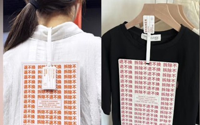 Những chiếc nhãn quần áo to gần bằng tờ giấy A4, treo lủng lẳng trên các món đồ thời trang mới, đang gây bão trên mạng xã hội Trung Quốc. Trên đó in rõ cảnh báo: “ Gỡ nhãn – miễn đổi trả”.