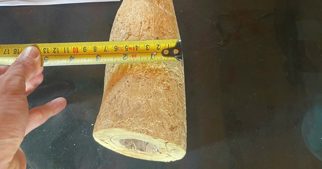 Vật màu trắng nghi là ngà voi được 1 người dân ở Thanh Hóa nhặt được dưới sông. Ảnh: Công an Thanh Hóa
