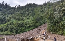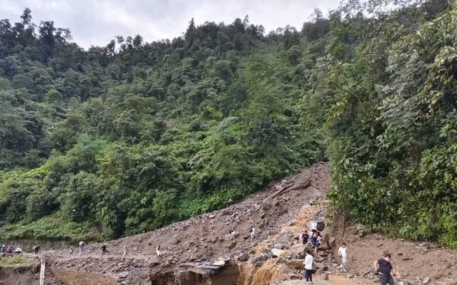 Đèo Khau Phạ, đường dẫn lên Mù Cang Chải trên quốc lộ 32 bị sạt lở, chưa thể khắc phục. Ảnh: NDCC.