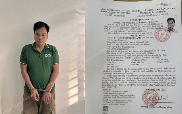 Phòng Cảnh sát Hình sự Công an TP Đà Nẵng cho biết vừa phối hợp với Công an phường An Khê bắt giữ đối tượng truy nã Nguyễn Phước Anh (SN 1990, trú phường An Khê) về tội “Lừa đảo chiếm đoạt tài sản”.