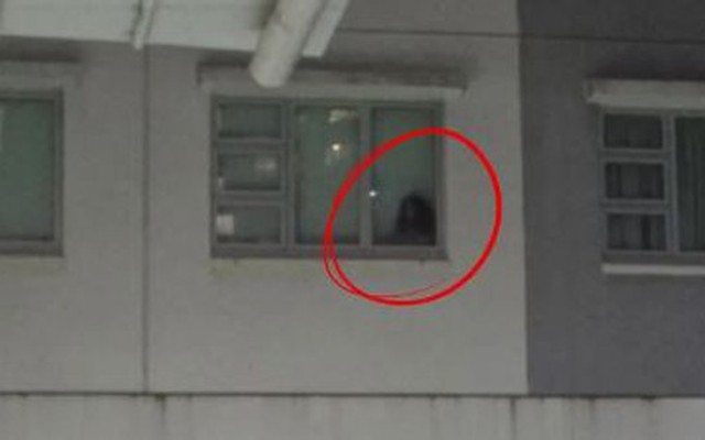 Bức ảnh chụp từ góc phố cho thấy một bóng người nhợt nhạt với mái tóc đen dài đang ngồi bên cửa sổ ở một trong những tầng trên của tòa nhà.